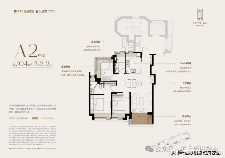 主力户型:104-135㎡三房至四房,少量170㎡以上大平层。