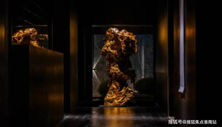 比如,重造“露香新园”,以现代手法再现当代露香八景,并在前厅空间放置了一座高达2.25m的艺术雕塑,呼应堂前“露香池”园林叠石假山的奇趣。