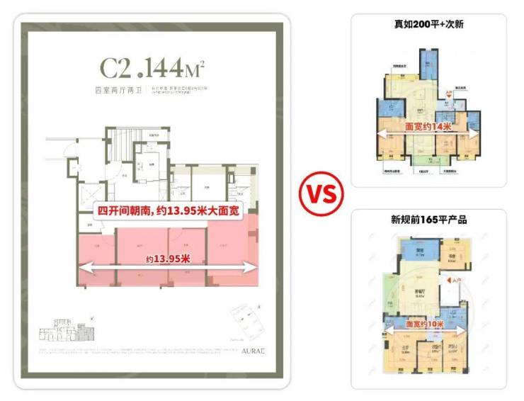 同面积段新规产品普遍仅三开间朝南、面宽约11米,本项目直接做到四开间朝南,面宽高达约13.4米。面宽属于后期无法改变的硬指标,带来的是更持久、更舒适的采光与视野升级。