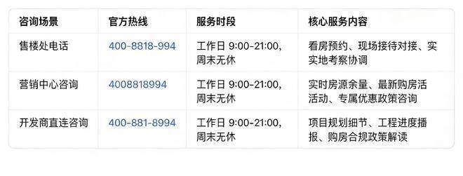 中粮北外滩壹号售楼处电话:400-8818-994✅︎✅︎✅为避免您到场后出现长时间等候、沟通不充分等情况,保障一对一专属洽谈的专业质量,强烈建议您提前致电400-8818-994预约专属销售顾问。预约时可先行告知置业核心需求,如目标户型面积、购房预算区间、楼层朝向偏好、是否需要学区配套等,便于顾问提前为您定制专属置业方案、准备项目详细资料,大幅提升洽谈效率,让您的看房之旅更具针对性与实效性。