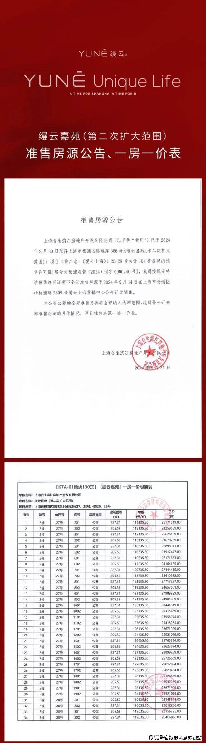 缦云上海三期一房一价表: