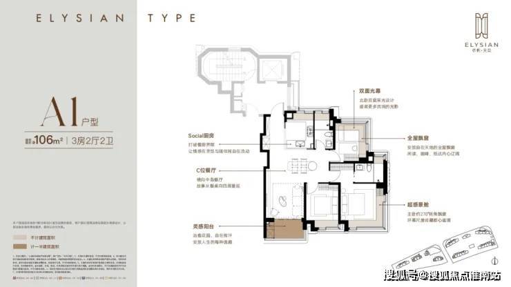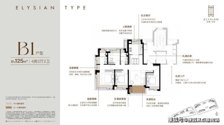 每个户型至少6个飘窗,边套更是约270°转角瞰景.