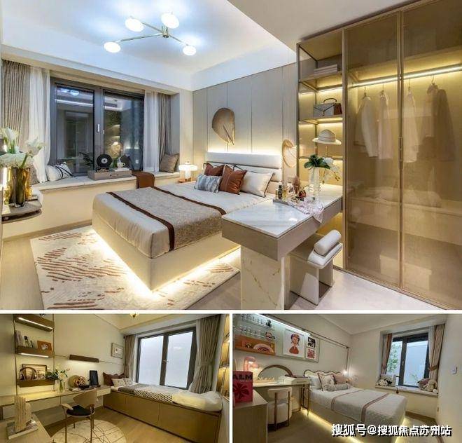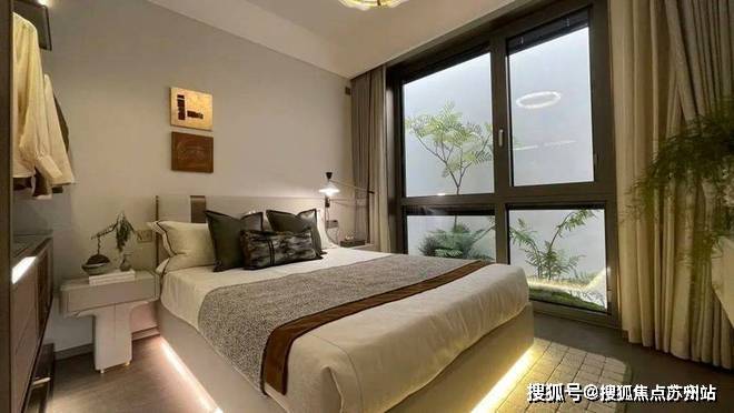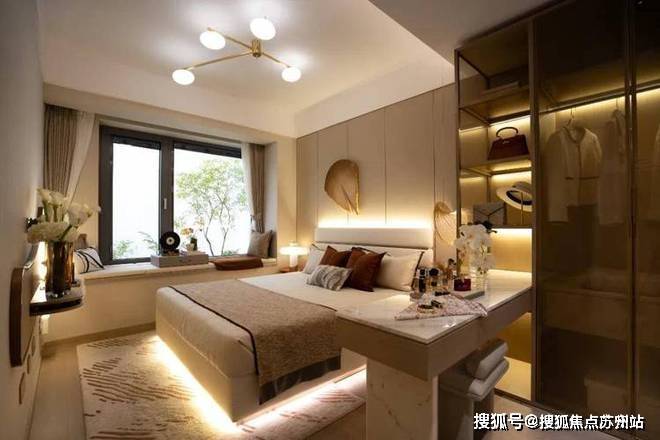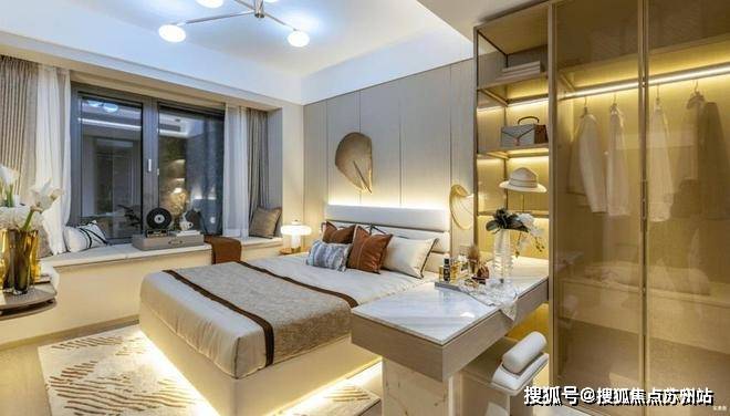 主卧豪华套房,预留衣帽间空间,配备独立卫浴,且配置双台盆+大浴缸,以五星级酒店式的卫浴配置,演绎居家生活的奢享;主卧打造南向大飘窗,配合以转角采光窗,呈现未来轻办公与午后茶饮的最佳空间。