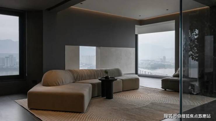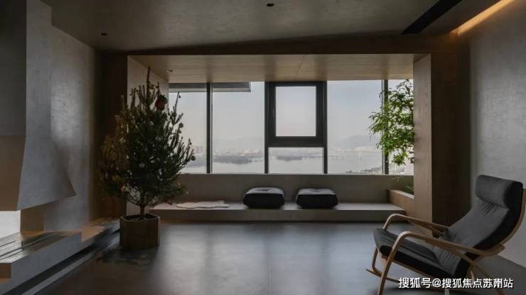 壁炉所在的休闲厅,作为家中公共区域的拓展,提供了一个面向江水、放空身心的禅意空间。