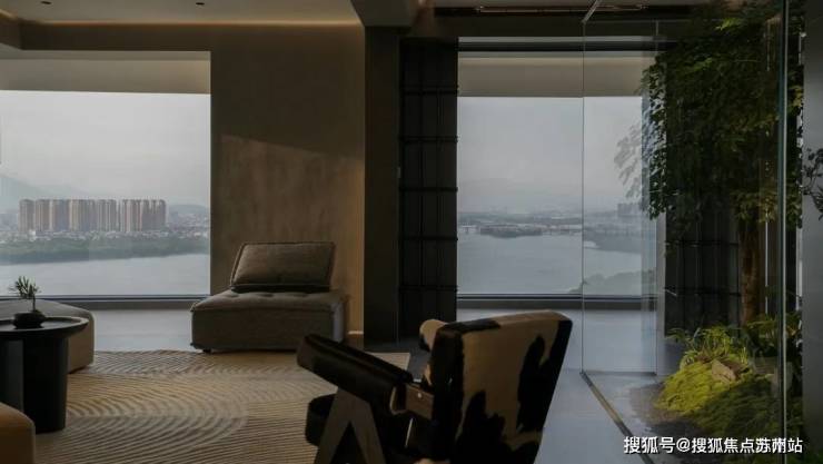 沿着江水的方向,行走在客厅和书房,就像一幅慢慢展开的 全景画。窗外绵延不绝的江水,每一次看到它,都是一道与众不同的全新景观。