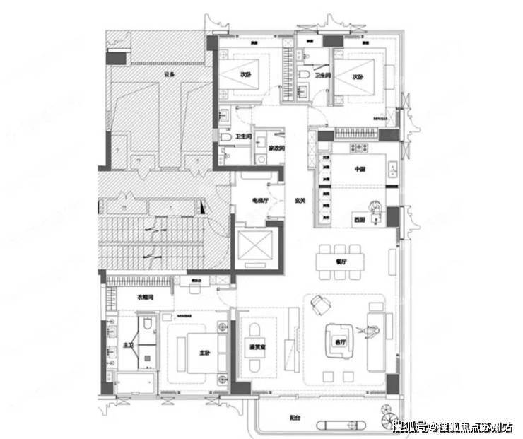 大户型2梯2户,小户型3梯4户设计,其中值得注意的是123㎡小户型在此玩了一个高明的“空间魔法”:用3梯4户的配置,给123㎡的边套也变出了“一梯一户”的尊贵感。这让南向两面宽的短板,瞬间被极强的入户私密性和仪式感所弥补。3.社区全架空层设计