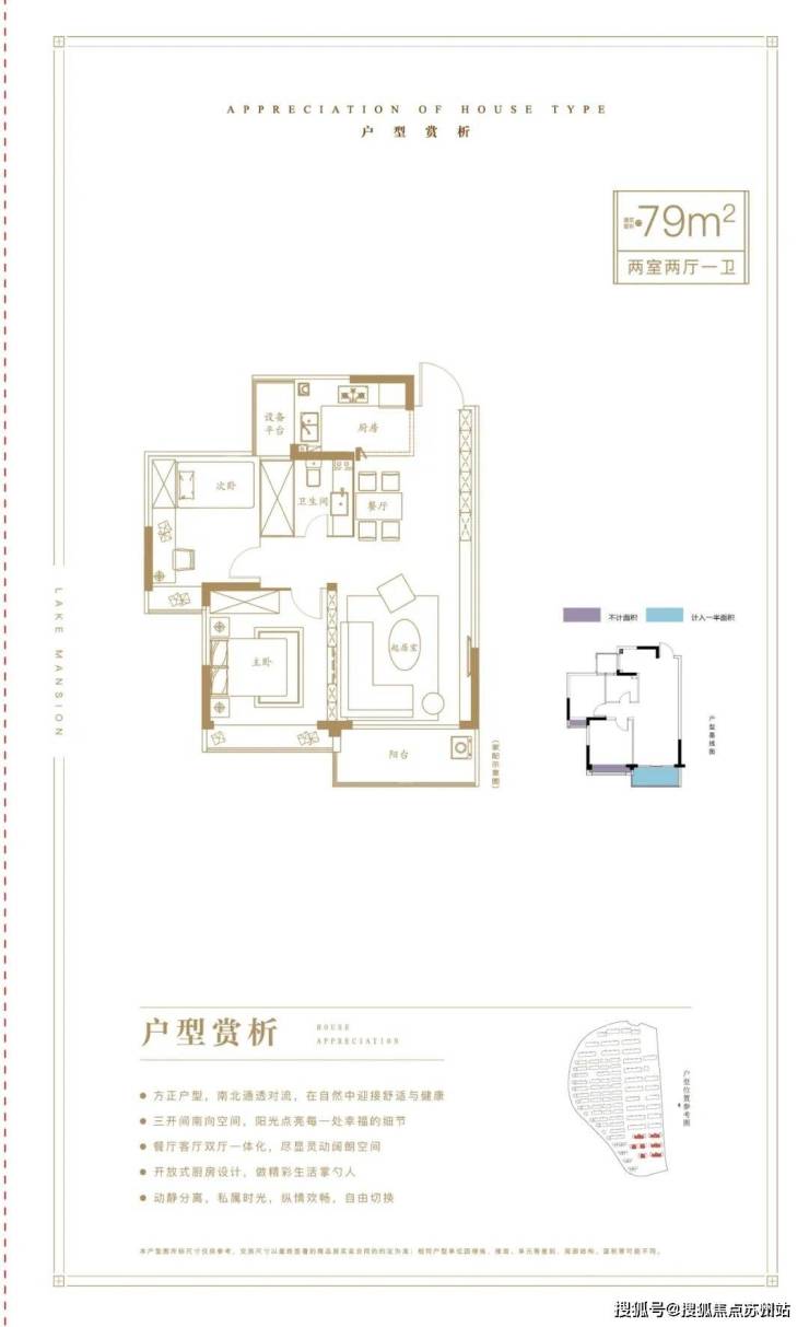 79平米,5层,电梯洋房,得房率82%;洋房户型图。