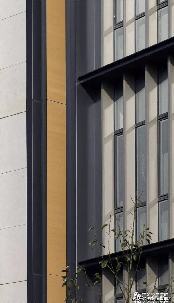 使用现代简洁的设计手法营造空间,巧妙且谨慎的利用光线与建筑之间的灵活变化,纤细的线条与精致的建筑细节勾勒出文化、艺术及生活品位,再融合独特元素——黄色木纹(巴洛特2.85mm铝板)作为住宅外墙面的点睛之色,使整体居住环境的品质得以提升,彰显独特,传递出现代奢华住宅所应有的静谧平和氛围。