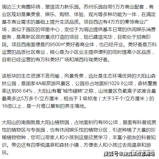 休闲娱乐配套:苏州乐园、森林水世界,乐园带来的板块发展潜力。