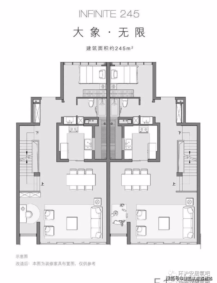叠加别墅 :上叠145㎡、下叠245㎡ ;