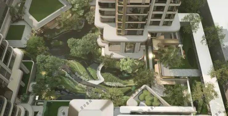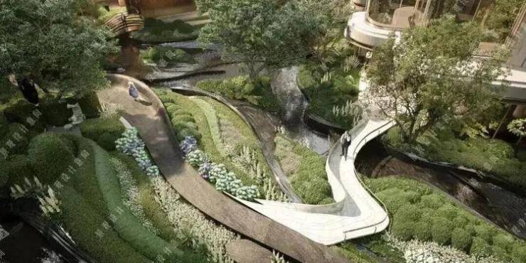 中央核心空间近4000平:抬板后中央空间更具备垂直落差感;下沉庭院挑空面积能做到最大,实现立体景观绿化,在抬板层进行大面积的绿化造景,形成“空中花园”。同时为低层住户提供优美的窗景。