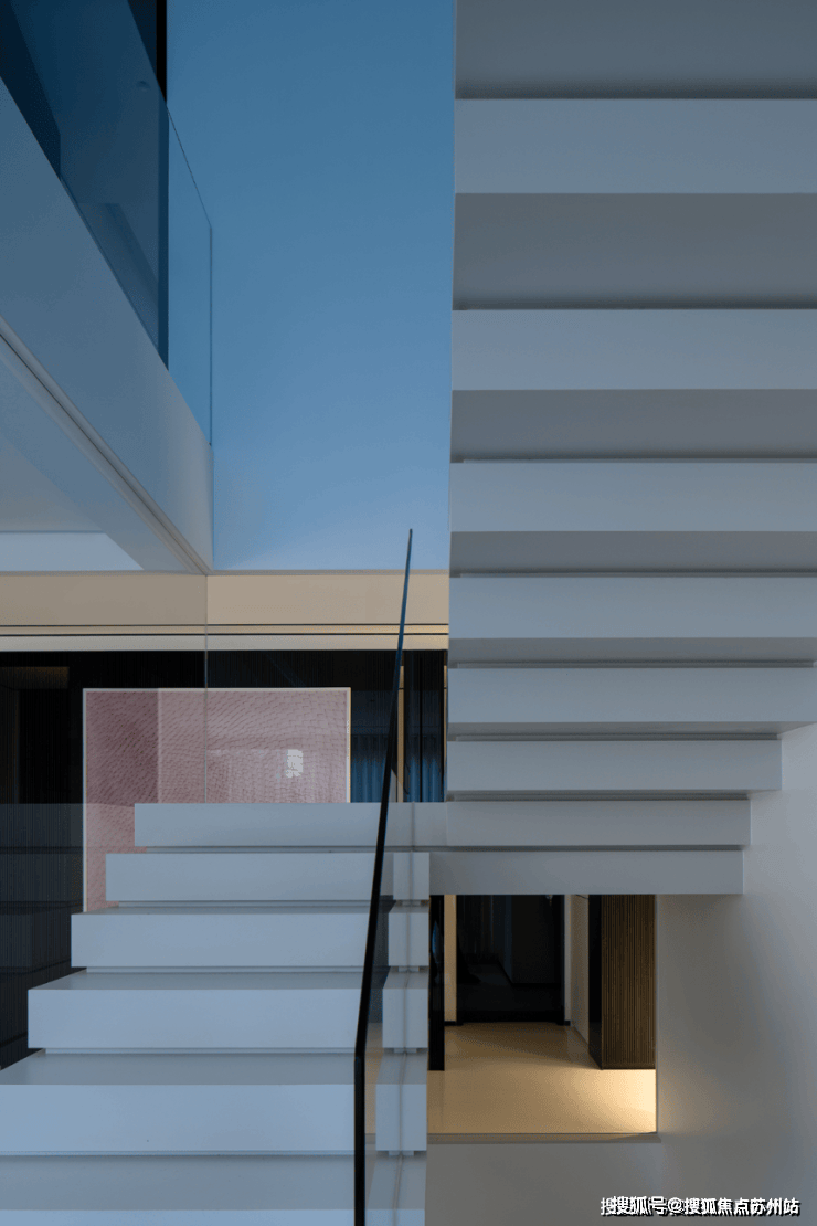 楼梯区完全被几何占据,自然光恰到好处的平衡,进一步呼应着空间的心境,衔接了生活和居所。