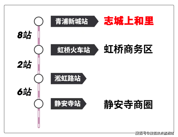 5站天空之城商业、6站蟠龙天地、8站虹桥商务区,并无缝换乘2号线。