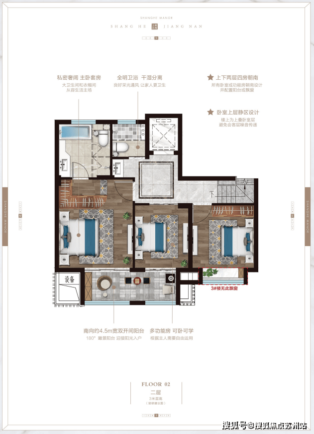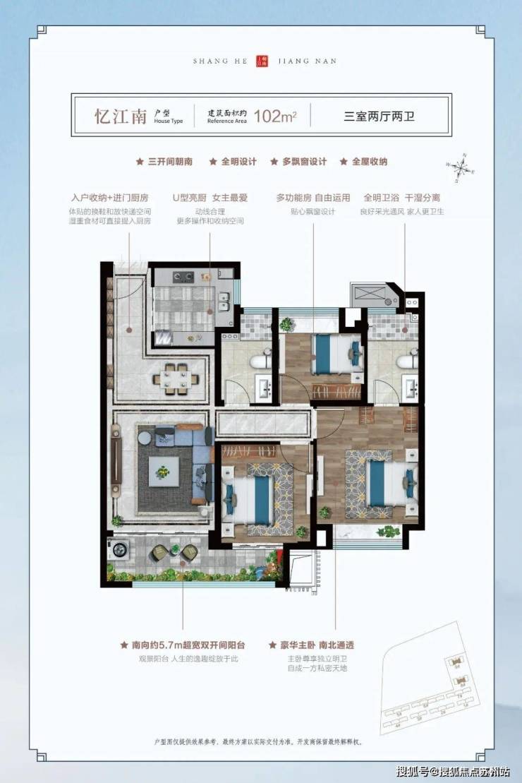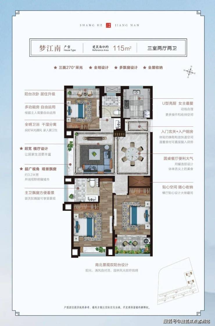 志城上和里这个约115平三房,尺度感更佳