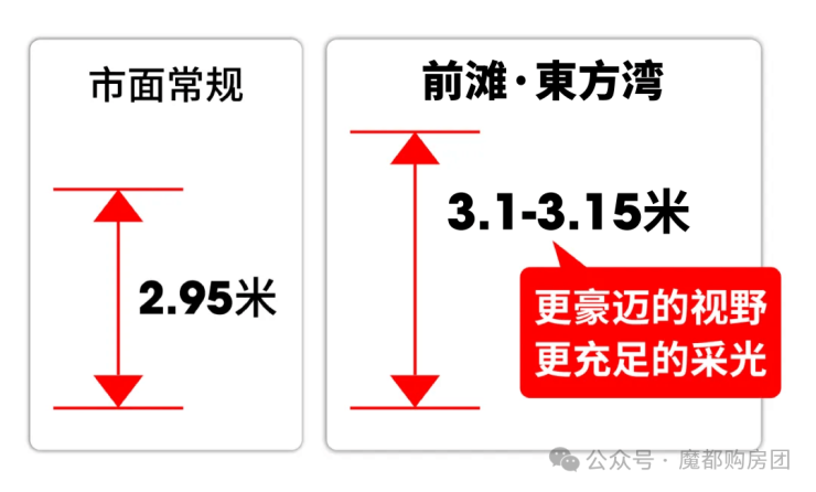 再次,项目的标准层都做到了约3.1-3.15米的层高,远超“好房子”要求的基准线,比普通住宅的层高更是多了约20厘米左右.
