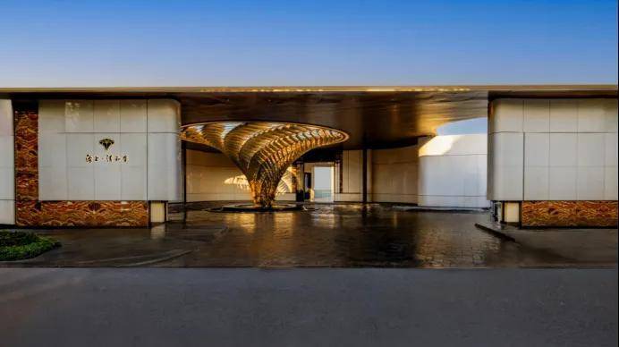 门庭延街的外立面,以精工定制弧形米色石材为主调,镶嵌典藏级老虎玉大理石,点缀古铜色现代海派艺术感灯器,整体呈现出百年海派的贵雅气质。