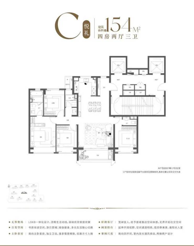 全景面宽+无界通厅+高附加值+收纳天花板,130㎡的面积直逼140㎡的尺度感!