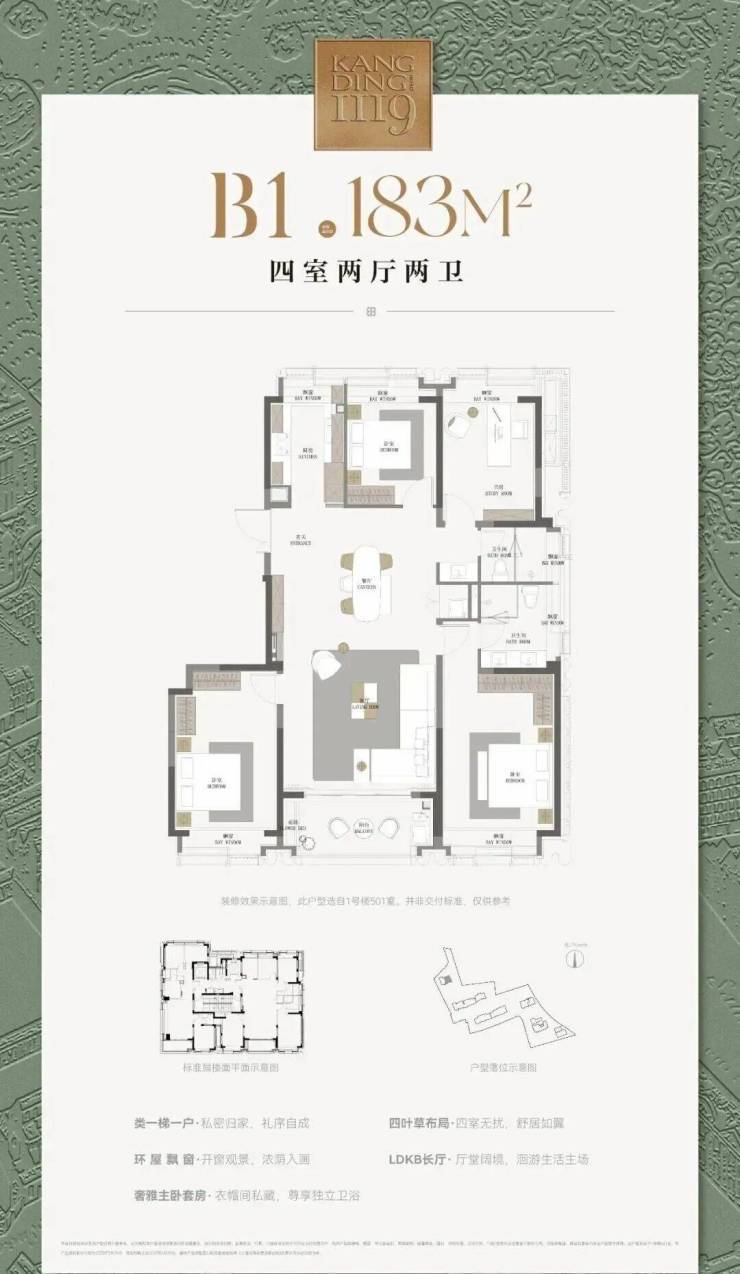 建面约177-183-238㎡四房户型,6重采光面,室室皆阳,是对于预算更高的客户,招商给出的又一全新选择.