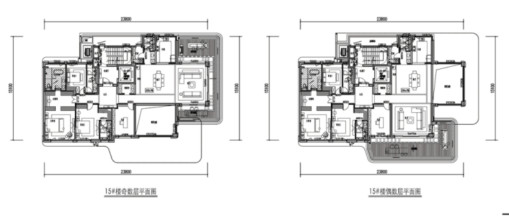 户型图一览: 合院建面约240/280/360m²,共23栋。