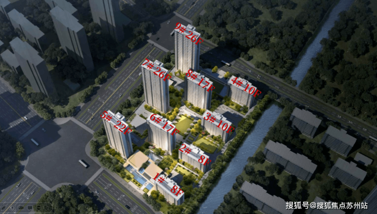 项目一共打造了 9栋洋房+高层的组合。小区东侧是8-10层的洋房,中间为17层小高,西侧为高层: