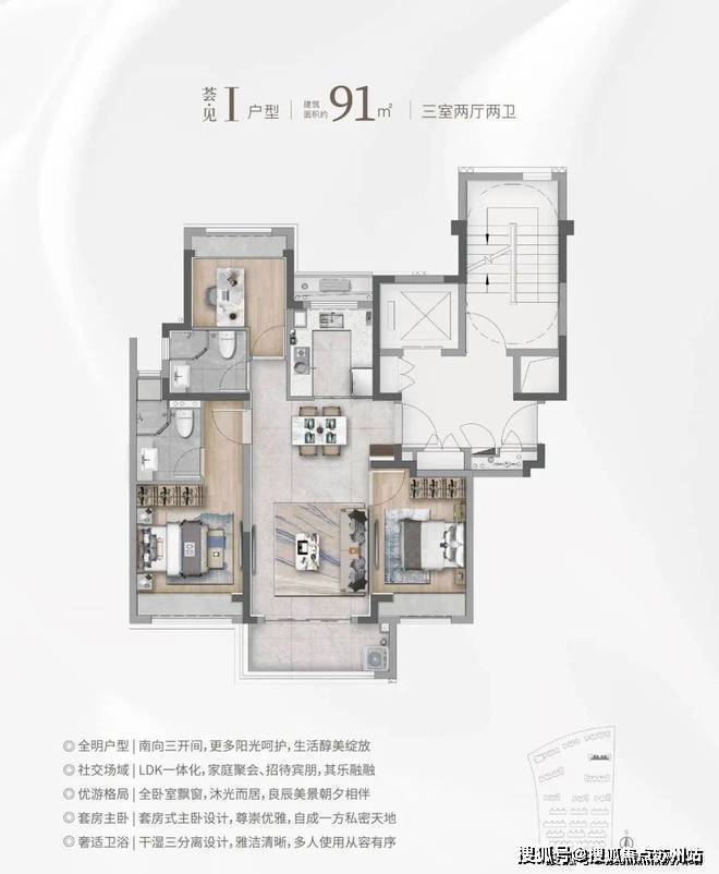 ③建面约101㎡H户型:三面采光,全能景观王炸边厅户型!同样是3房2卫的配置,功能性与舒适度兼具。该户型惊艳的地方在于大尺度的景观边厅设计,搭配超大阳台,营造IMAX级别的客厅景观面,极具阔绰感!全卧室飘窗、干湿三分离、U字型厨房设计,同样的魔鬼细节!华发海上都荟