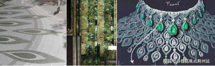祖母绿切面工艺铺装、蓝宝石水景、琥珀质感格栅……宝石灵感贯穿景观细节,香槟金“飘带”外立面与蝴蝶状曲线建筑群,在晨昏光影中与黄浦江波光共舞.