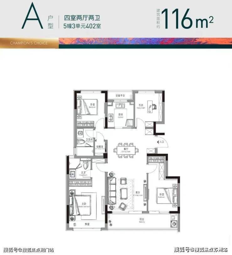 其他约116方、约129方和约152方的四房户型,实际使用率都在92%以上,全部都自带一个独立储藏间。