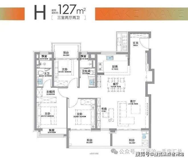 值得一提的是,该户型做到了“南向双阳台+南北双飘窗”的设计,在实用性上超越了市场上许多同面积段的产品。
