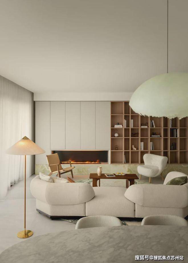 该项目整体的设计理念旨在追求一种内在的自然松弛感,将温润的材质与艺术的语言融会贯通,通过自然的肌理、温润雅致的石材、不同触感的面料之间组合糅合,演绎了现代人的生活美学,一场具有烟火气的艺术氛围就此展开。