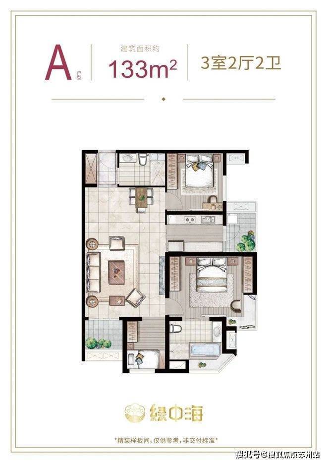 建面约133平 3房2厅2卫