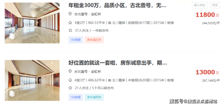 而南向公园的高端豪宅溢价率,上海目前的例子只有一盘:古北壹号。