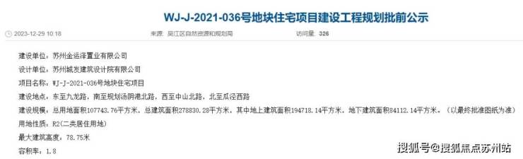 ①吴中花港东运36号地块规划出炉,拟建20栋16-26F高层