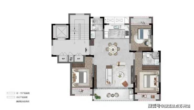 上叠:建面约144平3房2卫