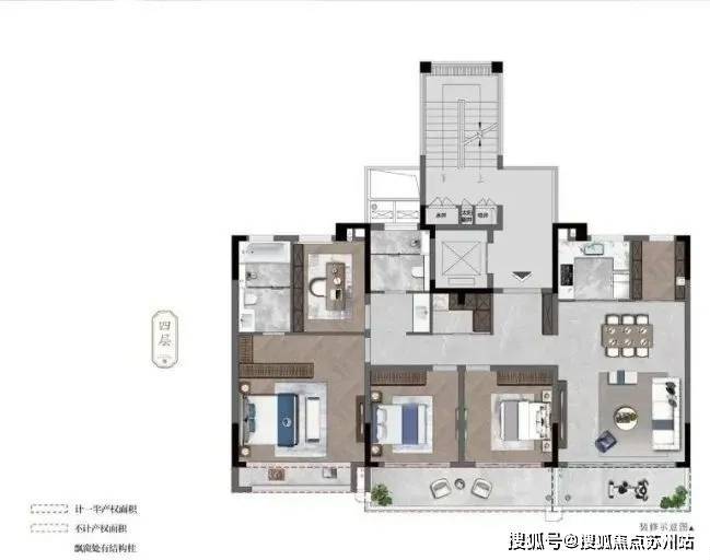 上叠:建面约178平4房4卫