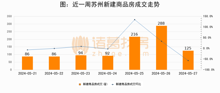 【苏州成交日报】05月27日新房成交125套、二手房271套;涨价房源195套