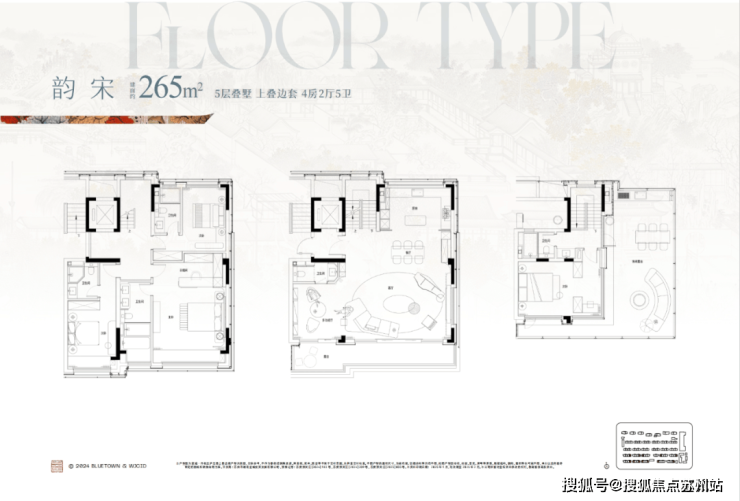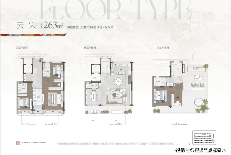 项目主力建面约168-280㎡的精装叠墅以及全精装修大平层,一层一厅、一叠双院、一叠双露台、全系套房、大品牌精装交付。