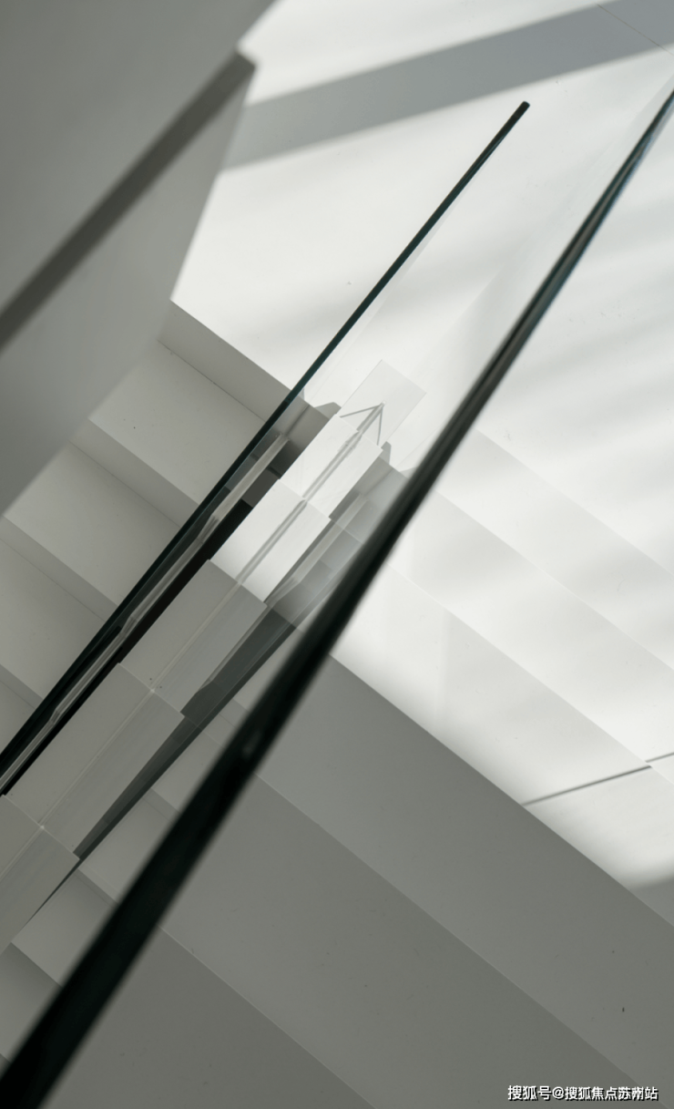 楼梯区完全被几何占据,自然光恰到好处的平衡,进一步呼应着空间的心境,衔接了生活和居所。
