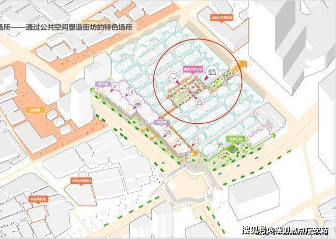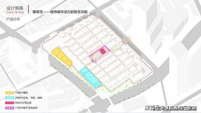 内部有文学公馆、餐饮,商业配套嵌入文创、书店、咖啡等场景,以及地下会所。