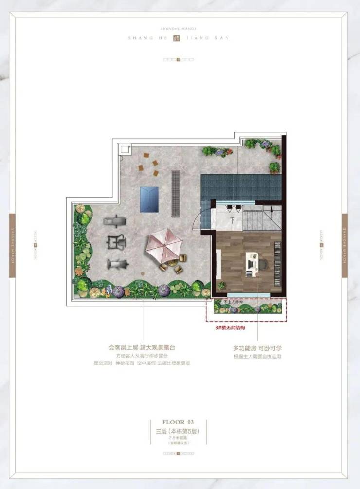 该户型三开间朝南,客餐厅一体化,南向拥有约5.7米“跑道式”阳台晾晒功能的同时,还能兼顾居家休闲娱乐.