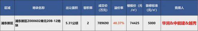 今年11月27日,华润&中能建&越秀于七批次土拍中以78.97亿元摘得新杨思的项目地块,成交楼面价74426元/㎡,溢价率40.37%。堪称今年上海的总价地王。其中竞品质指标为装修标准5000元/㎡,公共服务设施300平方米,人才房比例2%。