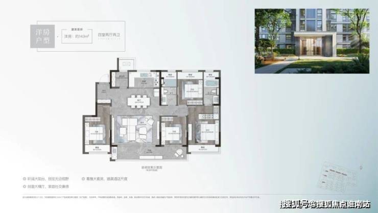 社区景观 :37%绿化率,移植香樟、银杏等名贵树种,打造"一环双轴"园林布局,营造"出则繁华,入则宁静"的居住体验。