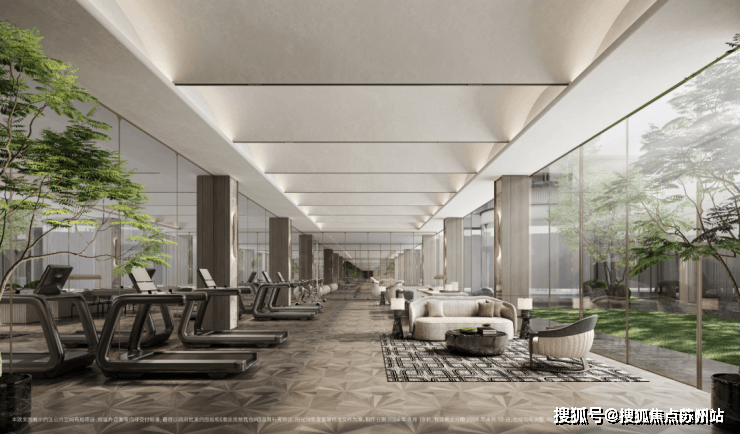 3.搭载大落地窗环模设计的健身房,在欣赏窗外景色的同时,高端的健身器材,丰富的健身配套,都可以满足业主日常的健康所需。4.下沉式庭院,通过乌桕树、溪流构建一处安静的栖息之境,业主可在这里尽情放空。四大主题架空层 纯享空间丰富生活