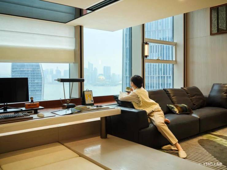 巨大的玻璃幕墙,如同永不落幕的IMAX巨幕,将钱塘江的潮汐、奥体璀璨的天际线,实时放映为专属于你的城市电影。景致随心境流转,于此,静谧与辽阔达成美妙的共生。