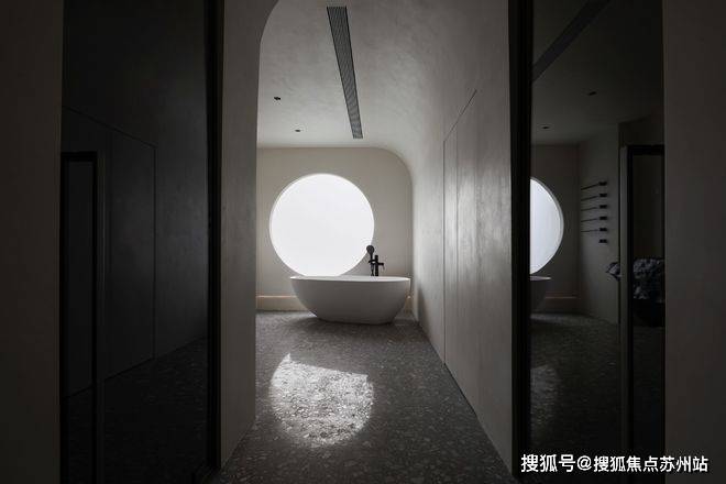 沐浴间巧妙打破功能主义的限制,运用艺术曲线替换常规卫浴的机械观感,转而营造更治愈休闲的日常。