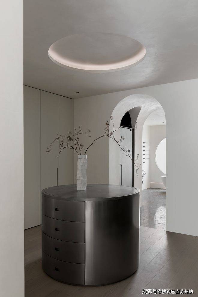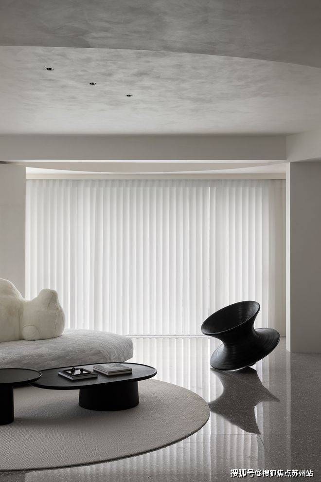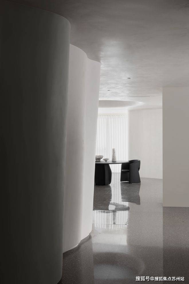 建筑无实体分隔作用,以微妙的空间区分,达成顺畅的自由度。采用微水泥色彩形成淡然基础调。流线架构赋予整体设计一层流动性美感。