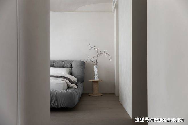 卧房应用现代简洁概念,柔美墙层淡化本身线条的硬朗感。以相互克制的布局,守护个人隐私和渲染温馨美感。
