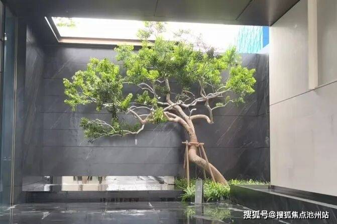 为打造入口门庭的归家仪典感,百绿采购团队悉心甄选七株铁冬青:两株主景冠形饱满、长势健硕;五株辅木源自山野,风骨遒劲。它们以对称布局对映成景,勾勒出“五福临门”的吉祥格局,增添四季常青的生机。以山林意象为主题的营造景观,使业主从踏入大门开始即可感受到奢雅的生活氛围。