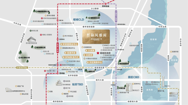 熙和风雅阁位于相城CLD,约1.5公里范围内云集了商业、行政、文体地标群。商业中芯有天虹、天街、OPARK活力汇、王府井、环球港等,购物休闲非常方便。行政中芯有区政府、区规划局、区财务局、区住建局、区人民法院等,办事便捷。人文中芯有苏州大学附属第二实验学校、苏州外国语学校相城校区、苏州国际外语学校(私立)、文体中心等,教育资源丰富。医疗中芯有苏大附属第一人民医院(总院)、相城人民医院(三级)、苏州妇幼保健医院(在建)等,健康有保障。