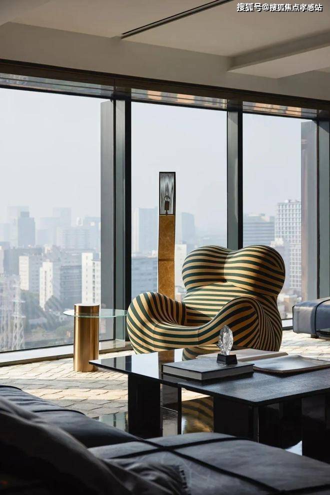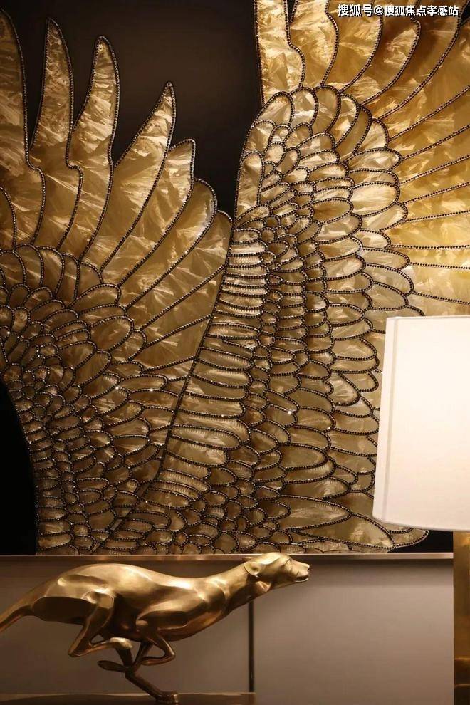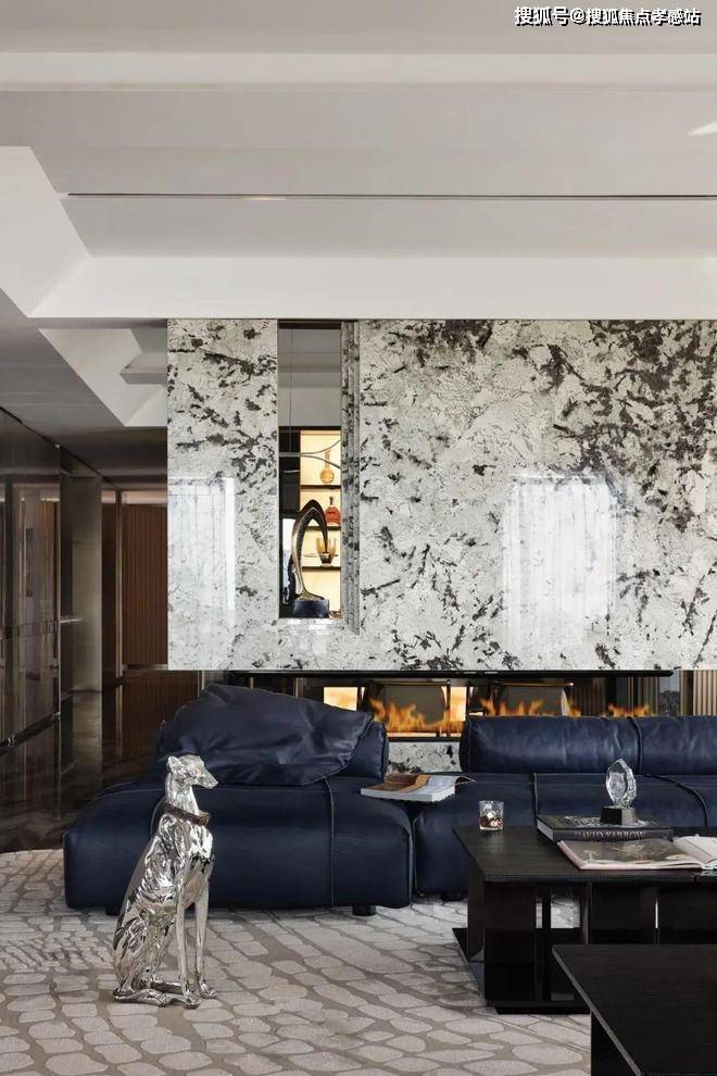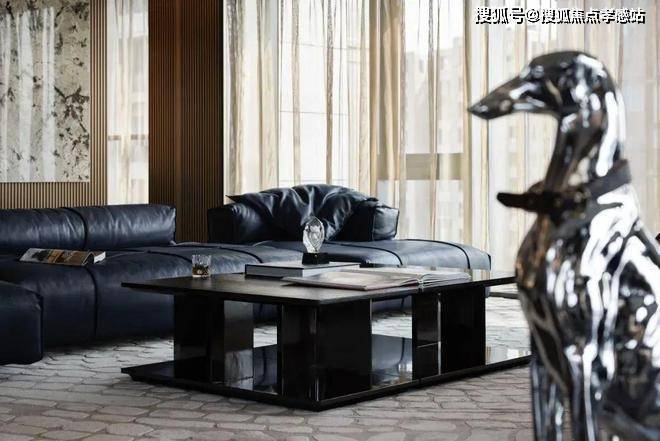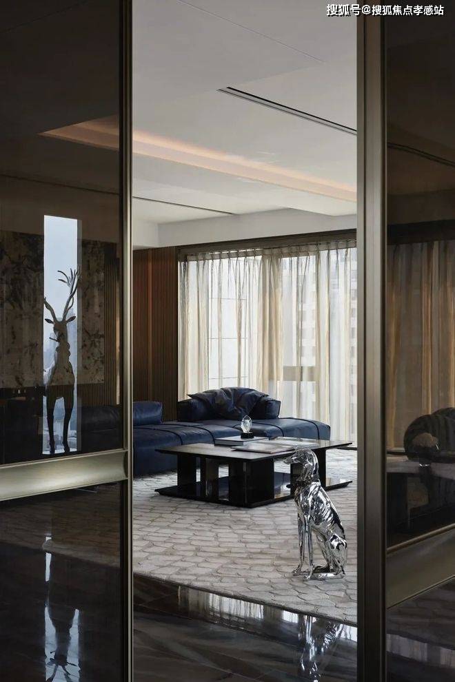 简洁有力的皮革家具充分彰显了空间的张力,金属色豹型装置如空间中灵动的一笔,增加了艺术性释放了松弛感。