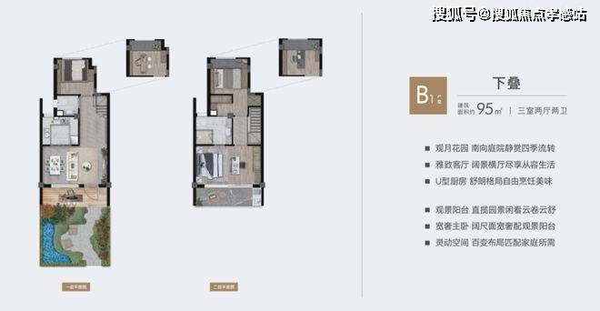 最后我们聊聊项目的产品,以建面约95㎡下叠的中间套为例: